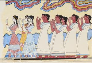 The 1936 Exhibition Collection contains the surviving panels with original artwork from a large public exhibition at Burlington House at the Royal Academy of Arts in London to celebrate the 50th anniversary of the British School at Athens. The exhibition, British Archaeological Discoveries in Greece and Crete 1886-1936, consisted of a special display of Minoan culture related to the discoveries at Knossos by Sir Arthur Evans as well as the excavations and other research projects of the School.