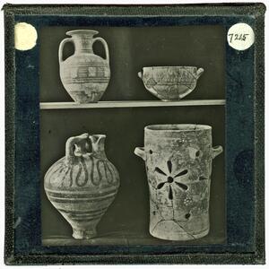 Part of a group of images from the British School at Athens excavations at Palaikastro, Crete in the 1902-1905. The original description in the SPHS negative register reads: "Palaikastro: vases, miscellaneous".