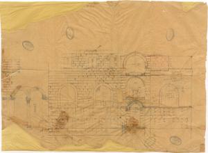 Transverse section, Part of elevation. This is a preliminary drawing. Further annotation in pencil survives.