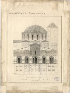 Katholikon - South elevation. The drawing is entitled: 'Church at Daphni near Athens', 'Elevation of South End, 1/4 Inch Scale'. The word: 'Daphni' is written in pencil at the back.