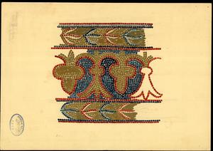 Katholikon - Mosaic decoration from freize of narthex. Coloured drawing wiht annotation in pencil.