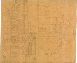 Transverse section, Part of elevation. This is a preliminary drawing. Further annotation in pencil survives.