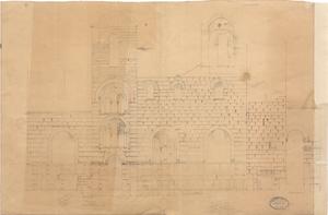Katholikon - North elevation (?). This is a preliminary drawing. Further annotation in pencil survives.