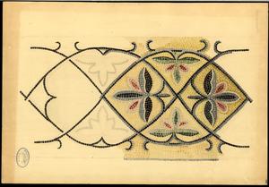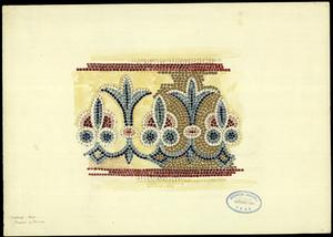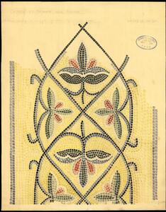 Katholikon - Mosaic decoration from freize of narthex. Coloured drawing wiht annotation in pencil.