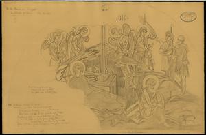Katholikon, nave - Mosaic decoration. The drawing depicts the scene of the Dormition which decorates the West wall of the nave. This is a preliminary drawing. Further annotation in pencil survives.