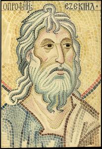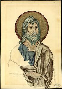 Katholikon, Nave (dome) - Mosaic decoration. The drawing depicts the image of Prophet Sophonias which decorates the dome. This is a printed colour proof of an original drawing. A signature survives on the back.