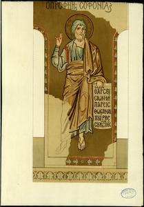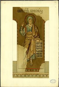 Katholikon, nave (dome) - Mosaic decoration. The drawing depicts the image of Prophet Sophonias which decorates the dome. This is a printed colour proof of an original drawing. Writing survives on the back.