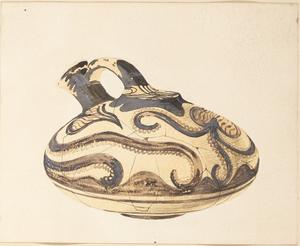 Watercolour drawing of L.H. II askos from Tomb 529. MYC 3/1/36/1 - MYC 3/1/36/8 are all included in 1936 Exhibition collection: 1936 EXH - 109.