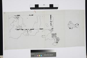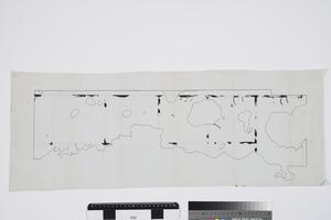 Ink drawing showing columns 1-5 of the North side floor of the palace. Only the surviving fragments are included. Squares 1a & 2b are also represented in MYC 3/2/11. These columns are also represented in MYC 3/2/25 & 3/2/26.