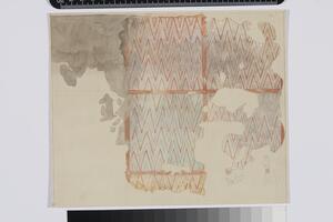 Watercolour drawing showing wave patterns painted on successive layers of stucco from the Palace Hearth.