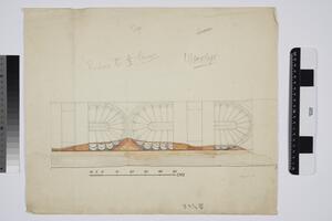 Watercolour drawing of shallow spreading cup from below the floor of the east lobby of the Grand Staircase. MYC 3/1/34/1 - MYC 3/1/34/4 are all included in 1936 Exhibition collection: 1936 EXH - 107