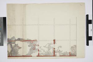 Watercolour drawing showing columns 6-11 of the North side floor of the palace. Only the surviving fragments are included. Column 6 is also represented in MYC 3/2/26. Columns 7-10 are represented in MYC 3/2/28. All columns are also represented in MYC 3/2/13