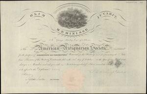 Diploma as member of the American Antiquarian Society (23 October 1838).