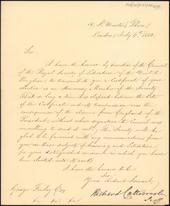 Honorary Membership of the Royal Society of Literature (London). (Enclosed-letter from the Secretary of 6 July 1856.)