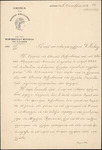 Letter from the Ephor of the National Library to George Finlay (16 October 1871).