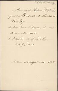 Invitation from M. and Mme. Photiades to Mr. and Mrs. George Finlay (13 September 1862).