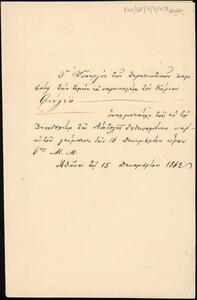 Invitation from the Minister of War to George Finlay (15 December 1862).
