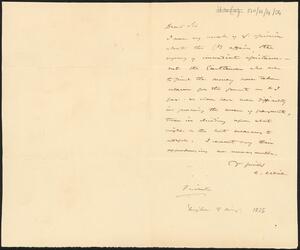 (40) Hastings to George Finlay, Syra. Karteria, opposite Idra, 29 August 1827. Re bill owing; hopes to be in Poros tomorrow; can get about on crutches. 1 p.