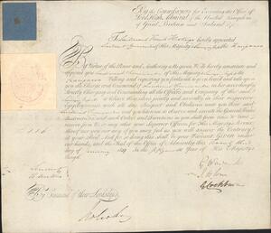 (69) H's commission as Lieutenant in charge of H.M. sloop the Misette. 6 March 1814. 1 p.