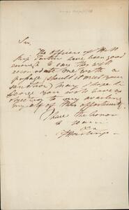 (49) Hastings to 'Messieurs les Generaux à Corinthe'. n.d. [October 1827]. Re presence of Turkish ship at Patras (in French). 1 p.