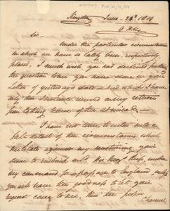 (32) Lord Cochrane to Hastings. 19 May [?1827]. Apologizes for not dining with Hastings. 2 pp.