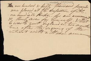 Jotting re money for steam-vessel payment put at disposal of Lord Cochrane.