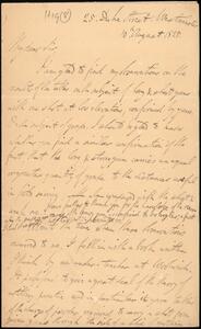 Thomas Perronet Thompson to H. 25 Duke Street, Westminster, 10 August 1825. Naval artillery; recent views.