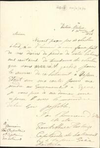 (73) (2 pp.) George Finlay to A. Durand, Paris. Athens, 8 April 1858.
