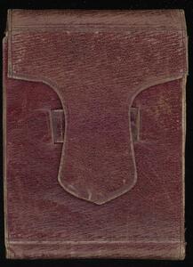 Brown leather notebook, oblong with clasp, handwritten, book plate, pp. 1-80.
