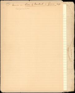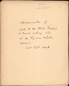 Memoranda of visits to the Wadi Tomlah and Canal of Suez and to the Fyoum [sic] and Lake Moeris [sic]', January, February 1846, pp. 1-12 and pp. 11 [Fayoum visit]. Loose pages at the end regarding a trip between Smyrna, Cairo and Alexandria in October 1845 as well as 2 pages (undated but possibly 1840) which appear to be written at a separate time and contain notes on Mr D.J. Mc Cauley American Consul at Tripoli which discuss the slave trade from Benghazi which includes Greek vessels which take slaves to Scios (Chios) and Smyrna.