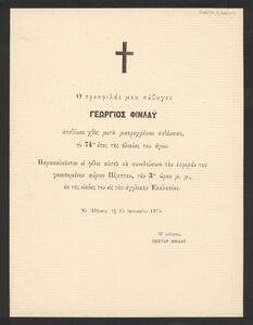 Three copies of the Notice of George Finlay's Funeral (15 January 1875) by Nectar Finlay (in Greek).