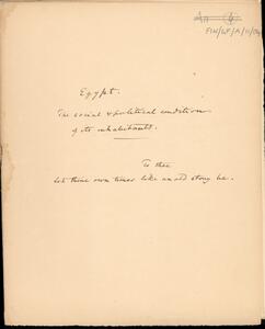 'Egypt. The social and political conditions of its inhabitants', pp. 1-41 + pp. 1-4 on the pyramids.