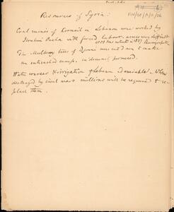 Resources of Syria'. Notes and observations and George Finlay's comments, unpaginated, 16 pp.