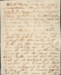 Copy of verbal message by Sir Thomas Cochrane for Captain Parker and taken down by Mr. Webb for Mr. Hastings. n.d.