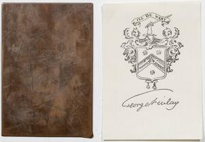 George Finlay's bookplate stamp with his family crest, motto and signature.