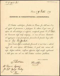 Set of documents grouped together in Hussey catalogue and includes: Election to Corresponding Membership of the lnstituto di Correspondenza Archeologica di Roma (9 December 1839).
