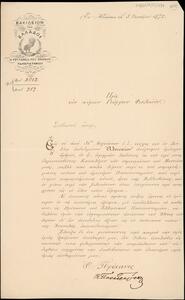Letter from the Prytanis of the National University to George Finlay (5 October 1872).