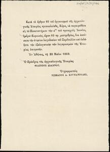 Invitation to a lecture at the Archaeological Society, 28 May 1869