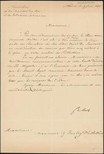 Re George Finlay's subscription to 'Galignannis' which has run out (with part draft on back in French dated 4 October 1834 re George Finlay's intention to set up model farm and proposed barracks; see no. 46).