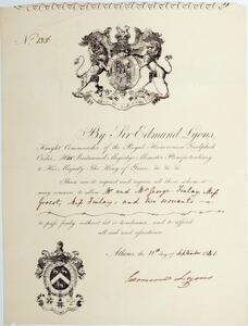 For Greece-to Mr. and Mrs. George Finlay etc. from Sir Edmund Lyons (11 September 1841).