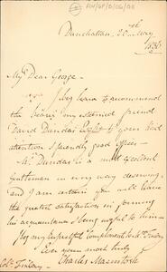 Charles Macintosh, Dunchattan, to George Finlay. 20 May 1836. To introduce David Dundas.