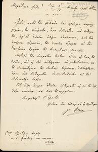 Demetrios Calliphronas to George Finlay: Athens, 15 March 1843. re financial and political weakness of Greece (in Greek).