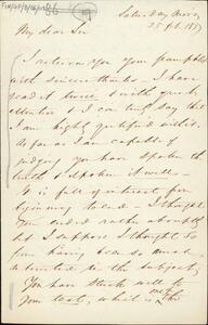 The Revd. John Henry Hill to George Finlay. 25 February 1837. Favourable criticism of George Finlay's 'pamphlet'.