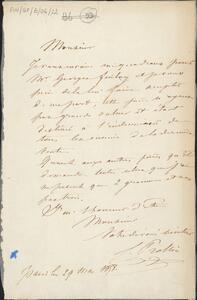 (25) (p. 33) George Finlay to Secretary of Natural History Society of Greece. 7/25 March 1841. George Finlay's resignation from Society (in Greek).