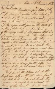 Thomas Gordon to George Finlay. Argos, 20 January 1837. Favourable comments on George Finlay's book. Asks for political news from Athens.