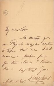 (47) (p. 58) George Finlay to J. Green, Manager of the Commercial Bank. 23 October 1846. Asking for copies of balance sheet of Commercial Bank and list of overdue bills.