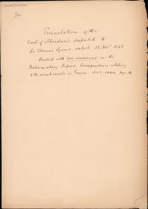 Greek translation of Earl of Aberdeen's dispatch to Sir Edmund Lyons dated 25 November 1843, printed with two omissions in Parliamentary Papers; correspondence relating to recent events in Greece 1843-4, p. 14, no. 8. (Also extract in English.)