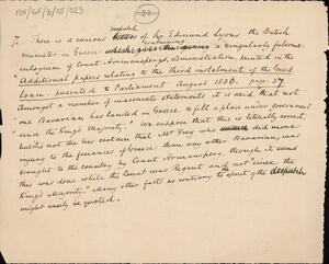 Note on misleading nature of Sir Edmund Lyons's eulogy of Armansperg's administration in Additional Papers relating to the third instalment of the Greek loan presented to Parliament, August 1836, p. 37.