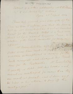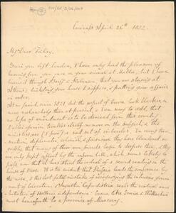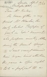 Col. William Mure to George Finlay. Burlington Hotel, London, 19 April 1853. Introducing Professor Blackie of University of Edinburgh.