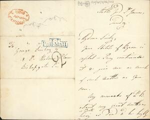 James Finlay to George Finlay. Glasgow, 16 October 1849. To introduce the Revd. John Anderson and Mr. James Stewart.